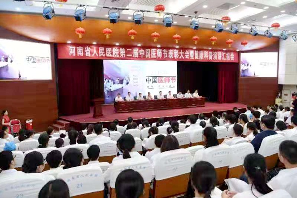2019年8月19日下午,河南省人民医院第二届中国医师节表彰大会暨健康科普演讲汇报会在省医科教大厦多功能厅举行。河南省政协副主席、农工党河南省委会主委高体健出席会议并讲话,省卫生健康委主任阚全程、副主任谢李广出席会议。
