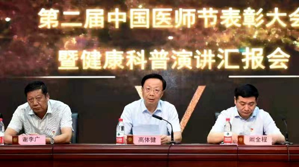 高体健向全体医务人员致以节日问候。他指出,将每年8月19日设立为“中国医师节”,体现了中共中央对卫生健康工作的高度重视、对广大医务人员高度关爱,希望同志们坚持以习近平新时代中国特色社会主义思想为指导,不忘医者初心,牢记健康使命,勇于担当、甘于奉献,以更加高尚的医德、更加精湛的医术、更加优质的服务、更加勤奋的工作、更加严格的自律,捍卫医师的崇高和荣耀,积极投身健康中国行动、健康中原建设,为中原更加出彩提供坚实的健康支撑,为不断增进人民群众的健康获得感、幸福感作出新的更大贡献。