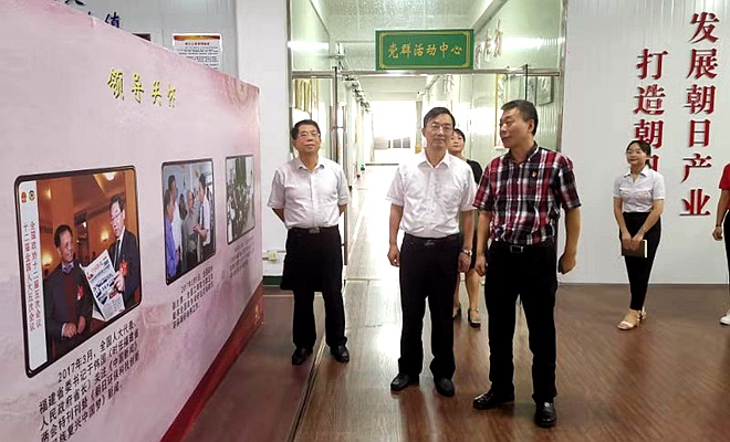 2019年8月19日,福建省政协副主席、农工党福建省委会主委刘献祥,省政协副秘书长、省委会专职副主委杨琳赴福建朝日环保科技开发有限公司调研考察。刘献祥和杨琳在中共福建朝日环保公司党委书记、董事长翁希明的陪同下参观了企业党群文化中心、产品展示室和作业车间。座谈交流中,翁希明董事长介绍了公司强化党建引领,用“红色引擎”推动企业高质量发展的成效,还就弘扬传统文化、建立企业核心价值观,加强企业管理等方面内容进行了交流,并表示今后将继续支持云南保山贫困学生。刘献祥充分肯定了福建朝日环保公司抓党建促发展的各项举措,并对公司大力支持农工党福建省委会在贵州大方县、云南省保山市开展精准扶贫工作,表示衷心的感谢。大家还围绕农工党基层组织建设进行了探讨。