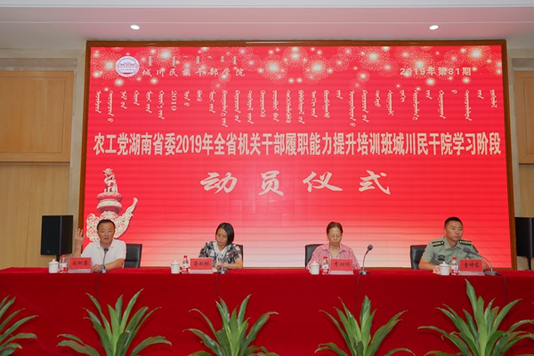 2019年8月19日—23日,农工党湖南省委会在城川民族干部学院举办2019年全省机关干部履职能力提升培训班。省委会专职副主委蒋秋桃、省委会机关副巡视员李湘祁出席开班式。