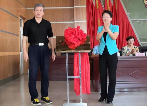 中共垦利区委常委、统战部部长杨文娟与王军副主委共同为基地揭牌。