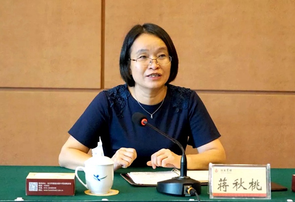 2019年9月28日,农工党湖南省委会在长沙举办企业界农工党党员法律思维与风险防范研讨会。省委会专职副主委蒋秋桃出席会议并讲话。
