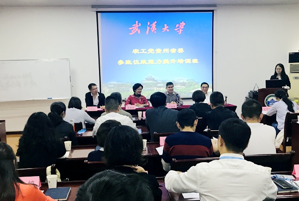 2019年10月11日至14日,农工党贵州省委会2019年参政议政能力提升培训班在武汉大学举办。农工党贵州省委会专职副主委黄惠玲出席开班仪式并讲话,农工党湖北省委会副主委、湖北省社会主义学院副院长严炳洲出席开班仪式并致辞,中共武汉大学委员会统战部副部长谢发平应邀出席开班仪式。