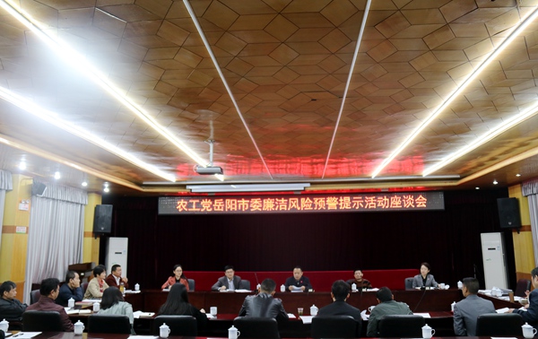 2019年10月17日上午,农工党岳阳市委会召开廉洁风险预警提示活动座谈会。市委会主委李为主持会议,专职副主委周波,副主委林辉、练伟出席会议。