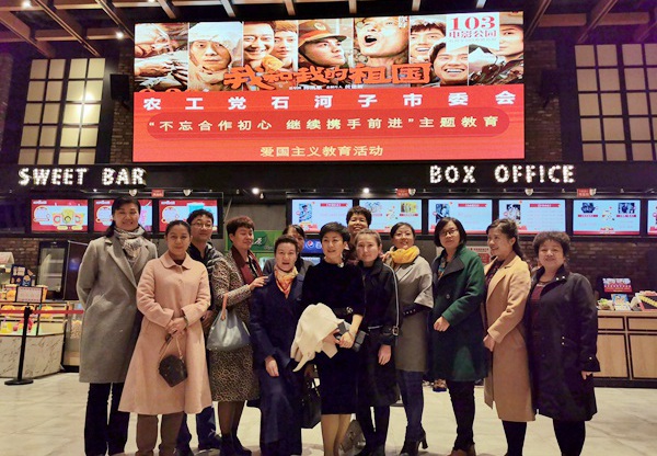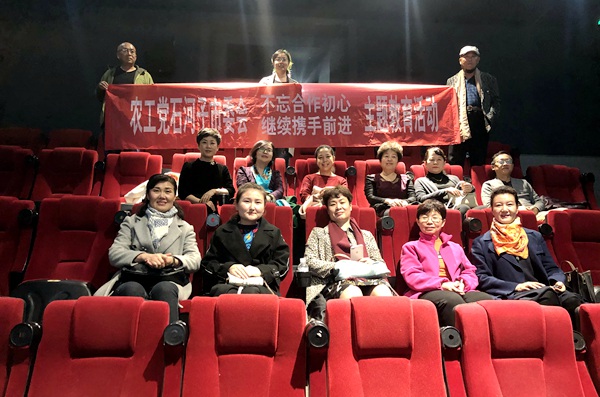 2019年10月27日,农工党石河子市委会为了庆祝中华人民共和国成立70周年,深入开展“不忘合作初心,继续携手前进”主题教育,激发爱国热情,组织部分党员、机关干部集体观看了影片《我和我的祖国》,市委会副主委李桂花、秘书长余丽君参加观影活动。