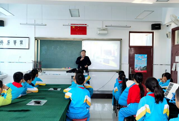 2019年10月25日,农工党北京市委会组织北京东方书画研究会副会长、党员书法家、篆刻家赵增福来到怀柔区雁栖镇,为中关村一小怀柔分校(原雁栖学校)五年级三班的同学们讲述了一堂关于中华传统文化、文字起源等内容的课程,这也是农工党北京市委会开展“牵手怀柔雁栖 助力精准帮扶”活动在该校设立农工党爱心书画室后的第一堂课。