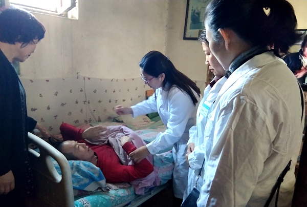 在贫困户家中,来自乌海市人民医院神经内科、肿瘤科、检验科以及中西医结合等科室的医疗专家,针对不同患者的病情、病史详细问询、查体,并制定专业的治疗方案和康复计划,帮助患者尽快康复、减少并发症的产生。同时,医生们还为患者留下联系电话,方便为患者的后续治疗提供咨询服务。此次活动还为到访的家庭带去了粮油生活用品。