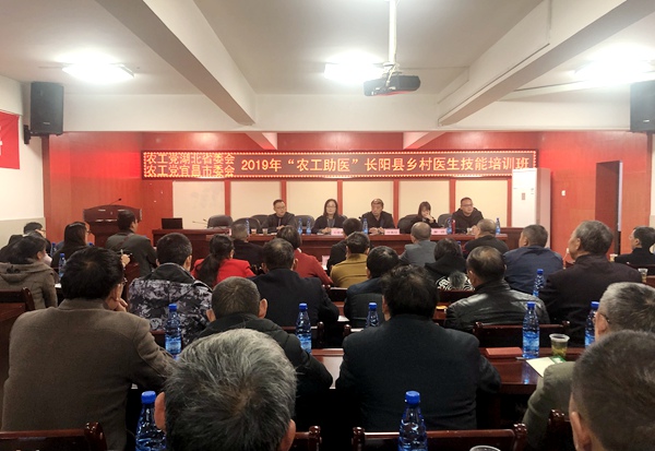 2019年11月8日-9日农工党湖北省委会、宜昌市委会联合兴山县、长阳县卫健局举办了两场“农工助医”乡村医生基础技能培训班,帮助基层医卫工作者提高诊疗效率,提升基层医疗服务水平,农工党湖北省委会社会服务部部长王佳丽、农工党宜昌市委会专职副主委付高信参加活动。