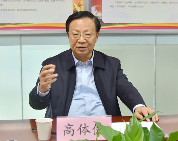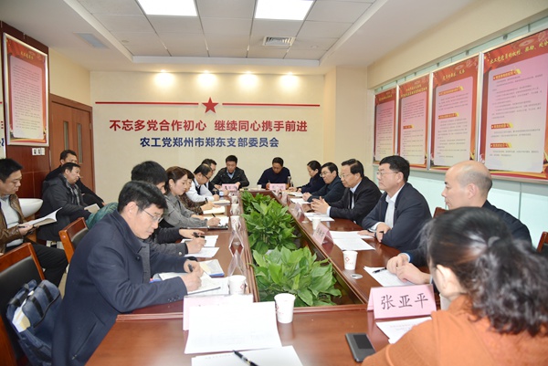 2019年12月9日下午,河南省政协副主席、农工党河南省委会主委高体健一行,来到农工党郑州市郑东支部“党员之家”,主持召开“不忘合作初心,继续携手前进”主题教育活动专题组织生活会,听取基层组织意见。省委会专职副主委花亚伟,省委会副主委、郑州市委会主委李新有陪同调研。
