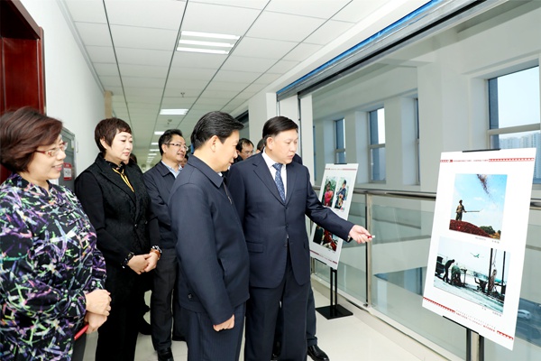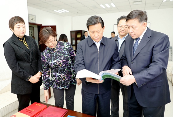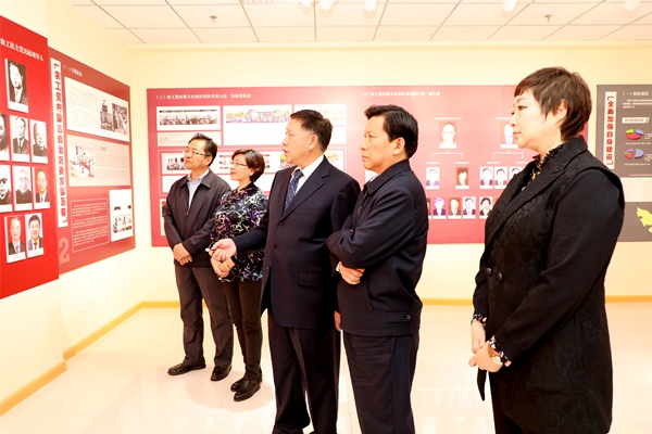在农工党内蒙古区委会机关,段志强部长一行在区委会主委云治厚,副主委王学东、闫敏、蓝峰的陪同下,认真观看了机关文化走廊,并与机关同志沟通交流,了解工作情况,听取工作建议。云治厚在区委会展室详细介绍了农工党的发展历史、农工党在内蒙古的组织发展现状、履职尽责、发挥界别优势开展的工作以及机关建设等情况。