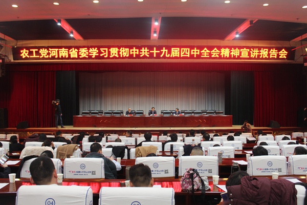 2019年12月21日下午,农工党河南省委会学习贯彻中共十九届四中全会精神宣讲报告会在平顶山市行政审批中心会议大厅举行。全国政协常委、河南省政协副主席、农工党河南省委会主委高体健作宣讲报告。