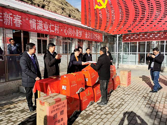 慰问仪式上,农工党甘肃省委员会向村内捐赠广场舞音响设备两套,向全村群众发放了122套棉被、被套、春联等慰问品,送去了帮扶单位浓浓地新春祝福和问候,祝愿老百姓的日子越过越红火,越过越精彩。