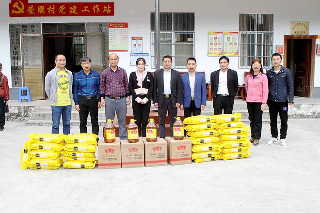 活动当天,在村委举行了简短的捐赠仪式,区委会联合区直环保总支向荣朋村捐赠了一批价值1.5万余元的慰问品。