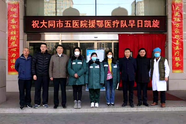2020年1月26日,农历新年的第二天,当千家万户还沉浸在节日的喜悦和团聚的温馨中时,农工党党员、山西省人民医院呼吸与危重症医学科副主任吴玉枝,农工党山西医科大学委员会第二支部副主任委员、山西医科大学第二附属医院呼吸与危重症医学科副主任医师刘谈珍,农工党党员、大同市第五人民医院特需保健门诊护士长刘欣娟,农工党党员、同煤总医院原呼吸二科主任、现同煤总医院肿瘤内科主任王志芳主动请缨,参加山西首批援鄂医疗队,前往湖北参与一线疫情救治。