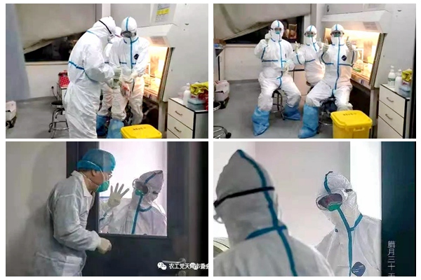 这里有两位农工党党员的身影,他们是主任技师刘勇和副主任技师李力(女),为了完成繁重的检测任务,除夕之夜放弃了和家人团聚,在疾控的“隐蔽”战线,发挥自己的专业能力,为遏制疫情发展贡献力量。(农工党天津市委会)