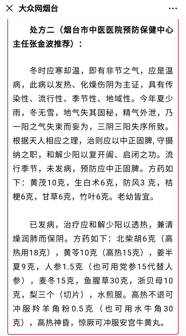 张金波,农工党烟台市中医院支部副主委、烟台市中医院预防保健中心主任。在疫情爆发的关键时刻,他利用自己的专业知识,积极参加市卫健委开展的中医药预防呼吸道传染病有关工作,推荐未发病和已发病方药,向社会公布,充分发挥中医药在应对新型冠状病毒感染的肺炎中的作用。
