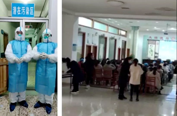 左:龙岩市中医院章浩军副院长参与会诊病人 右:黄鸿健医务科主任黄鸿健为中医院医护人员进行新型肺炎的讲解培训
