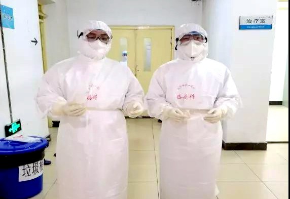 南平市第一医院呼吸内科蔡剑锋(右)、张祥斌(左)准备进入隔离病房查看病人