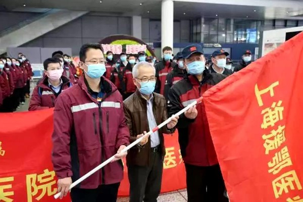 2月4日,华山医院赴鄂国家紧急医学救援队、东方医院派出的国家紧急医学救援队在虹桥高铁站汇合,上海市卫健委副主任、中医药管理局副局长、农工党上海市委会副主委张怀琼为上海援鄂医疗队授旗:“期待春暖花开的日子,你们平安归来,和我们讲述这个春天的故事!”