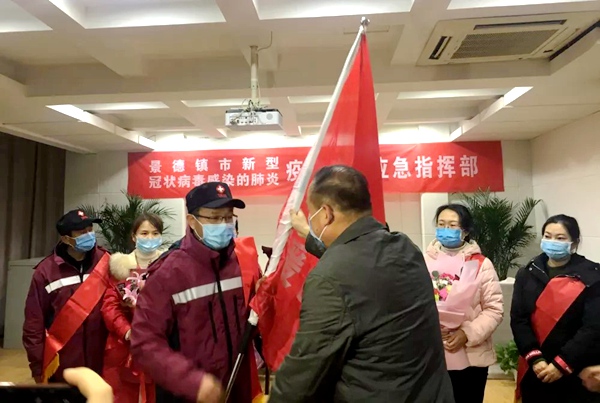 2020年2月6日晚10时许,尽管南昌寒风凛冽,雨一直未停,但由135名队员组成的江西省第三批援鄂抗疫医疗队已集结完毕,接受授旗,登车紧急奔赴湖北随州援助疫情防控和医疗救治工作。其中,景德镇市第三人民医院内科副主任医师余英荪、吉安市永丰县中医院呼吸内科主任徐晓明、宜春市万载县人民医院检验科副主任曾文祥三名农工党党员随队奔赴湖北。
