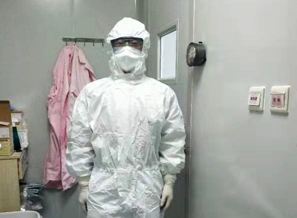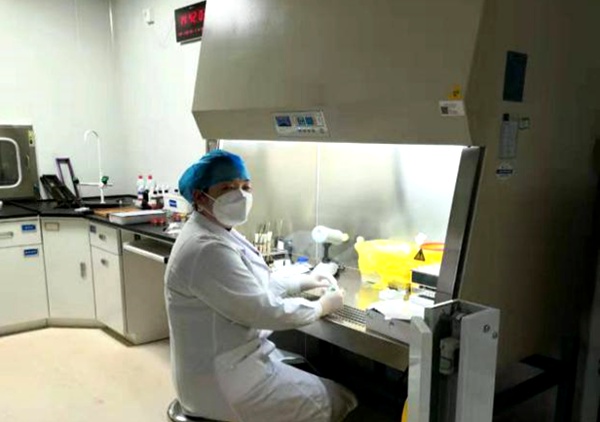 囯药东风总医院检验部副主任张华同志,坚守核酸检测岗位,每天坚持到岗,与分子生物一起排班,坚持新型冠状病毒感染的肺炎的确诊工作。