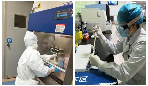 杨智海、余礼军参与发热门诊值班和检验工作状态