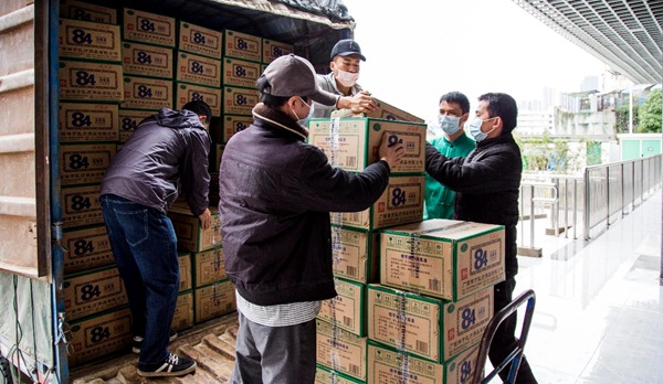 捐赠仪式后,捐赠的防控疫情物资直接装车运往疫情防控一线,助力新冠肺炎疫情防控工作。
