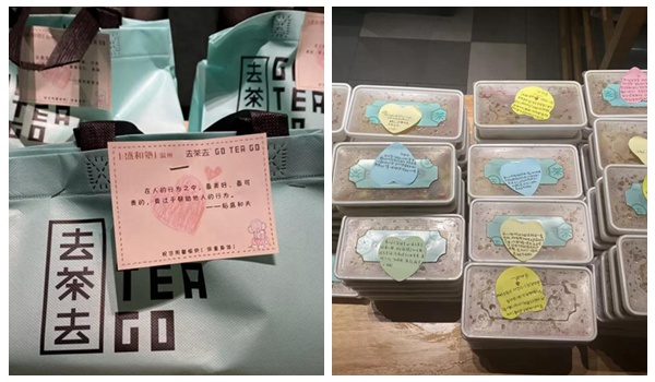 “去茶去”的义举得到了“战疫”前线的真挚感谢,“雪中送碳”、“暖胃更暖心”、“终于不用又吃泡面了”、“可爱的‘蓝’精灵”是他们每天都收到的真诚回馈。