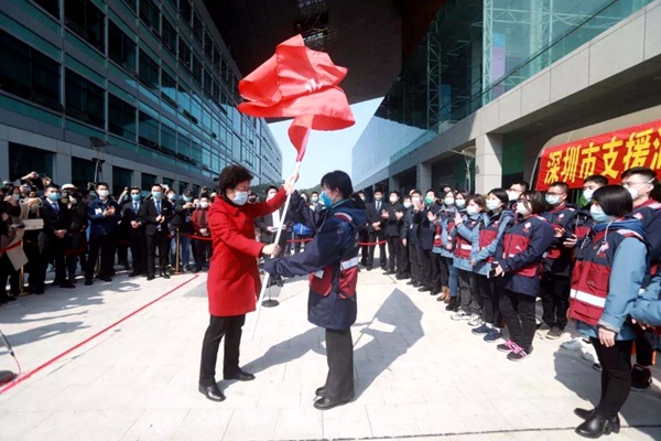 2020年2月17日下午,深圳派出首支中医医疗队出征湖北,前往武汉支援雷神山医院,“悬壶出征披素甲,不破新冠誓不还”!