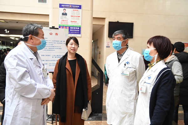 刘青光(左一)现场指导交大一附院发热门诊工作