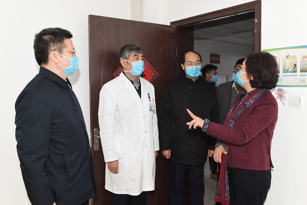 刘青光(左二)陪同省卫建委主任刘宝琴(右一)视察工作