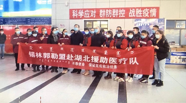 2020年2月18日,来自内蒙古自治区中医医院、内蒙古自治区第三医院,以及赤峰市、呼伦贝尔市、兴安盟、通辽市、锡林郭勒盟等5个盟市15家医院的153名医务工作者在呼和浩特集结,紧急奔赴武汉,将接手武汉市肺科医院重症医学科的医疗护理工作。