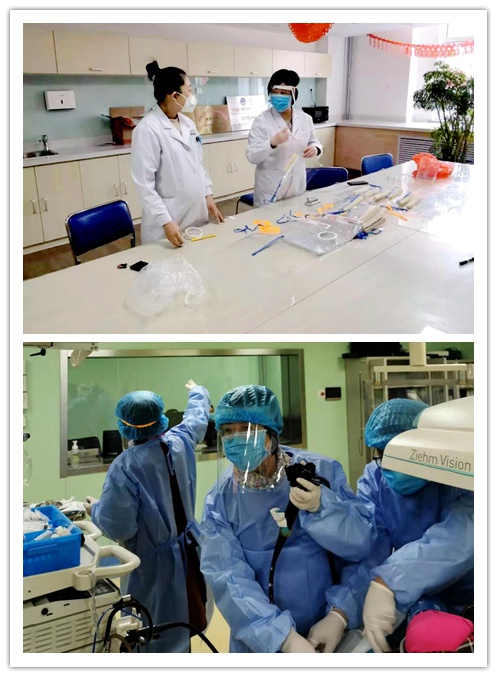 包头市医学院第二附属医院消化内科是自治区领先学科,也是平日里就诊患者较多的一个科室。为把珍贵的防护资源省下来留给防疫一线的同事,农工党包头市委会委员、消化科主任孟宪梅带领医护人员制作防护面罩。他们的这一行动得到了很多科室医护人员的效仿,大家纷纷参与到防护面罩的制作当中,为防控疫情出力。孟宪梅主任还开通了线上门诊,让市民在疫情期间足不出户就可以进行实时在线咨询沟通,实现方便问诊。