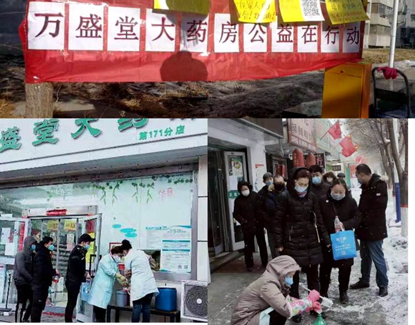 不仅如此,盛红雨所在的万盛堂医药连锁公司还开展了爱心赠送活动。新疆万盛堂总部自2020年1月30日起全疆156家连锁药店每天为周边市民每人免费发放一瓶500毫升84消毒液,截止2月16日,累计向市民免费发放84消毒液6000多公斤,力保大家都能用上消毒药品,共同抗击疫情。为方便群众用药,药店还开展了送药上门服务,解决了居家隔离群众的用药问题。
