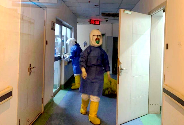 大年初一再次踏上征程,由于患者的病情复杂光是执行医嘱、书写护理记录、给隔离区的同事传递物品就忙得天昏地暗,中午1点半才有空吃上口热乎饭,晚上忙到了10点滴水未进的返回了家中。这里要提到我的老公,他也是从事我们这个工作的,深知工作的艰辛和危险,此时他是我最好的后勤,知道我来病房后工作忙,一方面叮嘱我小心防护,照顾好自己、同事和患者;一方面也扮演起司机的角色,每天接送我上下班,随叫随到,真的很贴心,让我能全身心的投入到应急工作中。