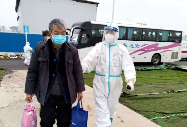 2月14日晚六时,病区正式接收患者。队员们除当时值班人员外,都到病区外主动按程序迎接患者,并不断安慰患者,稳定情绪。截止当晚11时,A11病区收治28名患者,抚顺市3名队员仍在工作中。
