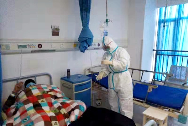 第二天,带着医院领导和同事们的叮嘱与希冀,我们登上飞机,奔向我们的战场。我们工作的地方是仙桃市中医院,一个疑似病人留观筛查的定点医院。经过严格的培训和理论知识的进一步加强,我们进驻医院,开始了与新冠病毒的斗争。由于患者数量巨大,每天都是疑似病人排队住院,成批转院、出院。工作量大,工作时长,上班前不敢多喝水,备着纸尿裤,封闭的防护服下出汗逐渐减少,护目镜逐渐模糊,甚至于遮挡了视线。看着患者一张张焦虑的脸,口罩根本挡不住他们的担心和恐惧;看着确诊患者走上转诊车,有时控制不了情绪,但还得不停安慰,不停疏导……每天回到休息的地方都身心疲惫,但还是强迫自己吃饱,恢复精力,再梳理一天的工作,有无失误,有无改进。
