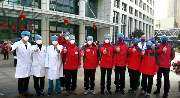 2月22日,4位患者出院,倪红英和浙一黄河院长等诊疗专家合影