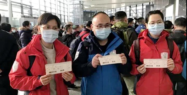 2月21日第一批由介勇副院长带队一行三人整装集结,肩负重托和使命,踏上驰援湖北抗击疫情的征程。
