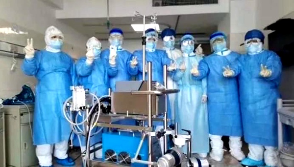 “有一位33岁的男性患者病情迅速恶化,2月4日,我们为他采取了ECMO(人工膜肺)技术,成功将他救治。”张卿如是告诉记者。张卿说,如今,这位患者已经顺利脱离呼吸机。医院也因此成立了专门的ECMO团队。荆门市一位患者出院后对着采访镜头向他从未谋面的医护人员深深鞠了一躬,他说:“虽然我看不见他们的脸,也不知道他们的名字,但是他们明亮的眼睛给了我力量!”(摘自腾格里新闻)