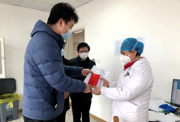 由于尚在交通管控期,浠水、麻城两地医疗队党员分别委托东坡支部浠水党员夏芳、董清,麻城党员李业鹏、江利安看望慰问,给支援黄冈农工党党员们送去慰问信和慰问金,表达全体黄冈农工党员对湖南、山东党友的感激和敬佩,并关心询问他们的工作生活情况,叮嘱他们在黄冈期间工作之余注意休息,保重身体。黄冈市委会将与他们加强联系,愿意全力保障他们在黄所需。其中几名医疗队员已完成第一轮工作被黄冈市政府安排罗田、英山县温泉度假区休息,黄冈市委会后续将陆续看望慰问。