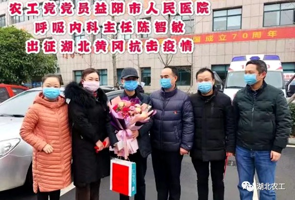 援鄂医疗队中,有9位农工党党员,他们是株洲市中心医院副护士长邓建斌,株洲市二医院神经内科副主任张乃文,湖南师范大学附属湘东医院呼吸内科副主任医师凌芳、邵阳市中医医院北塔分院业务院长罗亚、益阳市人民医院呼吸科主任陈智敏、长沙医学院附属第一医院重症医学科主任吴丹霞、湖南省血防所湘岳医院四病室呼吸内科护士刘琳琳、山东省立医院西院神经内科副主任医师冯建利、济南市儿童医院儿童重症医学科主任曾冬生。
