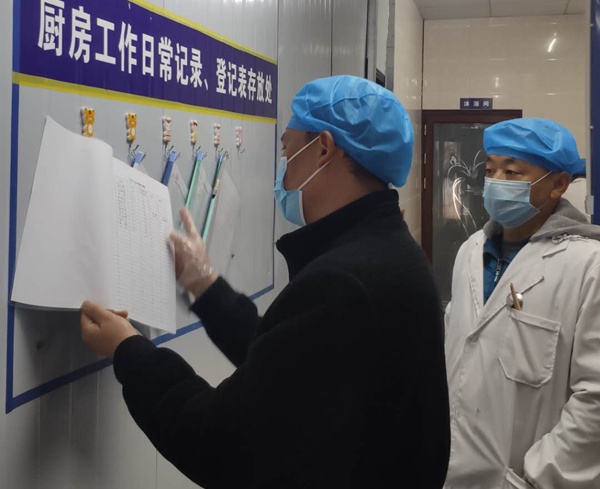 对于医院的生活保障,邓声熔作为总务科科长说:“第一是尽可能减少不必要人员的流动,采取一人一登记的方案。第二是医护和患者的饮水问题,我们直接和饮水公司联系,定点存放饮用水,避免送水人员在病区流动。第三,食堂采取定点定时取餐制。为了让食堂提前运营,我也是大费周章。回族食堂本来预计初八开业,费尽口舌才让他初二营业,当时没有储存的菜品,初二晚售卖的肉都是借来的,但不管怎么说,医院食堂的营业始终解决了全院医护和患者的当务之急。每天我都会去监督食堂的消毒工作,并且教他们如何建立消毒的档案,如何去配比消毒溶液。我们的一线同事在前线很辛苦,让他们“吃好”,是刻不容缓的。”