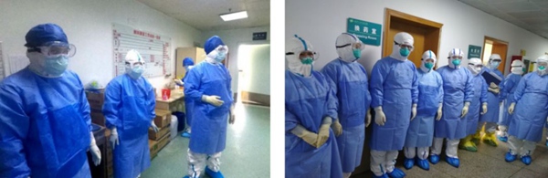 葛明华带领管理组通过调研,结合实际情况,基于科学防护的原则,制定了全面的防控制度和规范,如《医疗队感染防控与安全管理制度》,《工作人员防护用品穿脱流程》,《医务人员发生暴露和意外感染的紧急预案》,《感控督察组工作职责》等。他一再强调正确穿脱防护用品是最为关键的环节,“实际上很多医疗队员尤其是年轻队员在平时临床工作中很少甚至没有穿过防护服,在这个环节必须过关”。在接管病房前的短暂间隙期,医疗队马不停蹄的组织全员进行穿脱防护用品强化训练,队员100%通过考核。