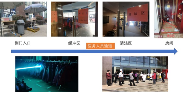 驻地酒店严格防控管理,三区设置,医务人员通道常态化消毒,酒店工作人员疫情防控培训