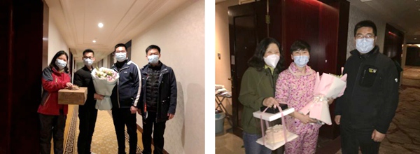 医疗队还对每位援鄂期间生日的队员赠送鲜花,蛋糕