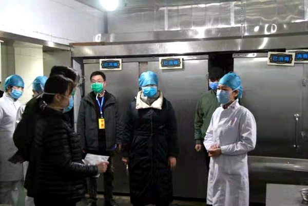万里新带领护理部,科学管理中心医院2000余人的护理团队,确保划片分工、应急梯队成立、全员培训、标准预防、保障护理、督导反馈等工作落实到位;在保障全院医用药品的供应上,及时掌握药品的储备和调拨发放情况,根据救治需要合理科学分配药品,并安排及时配送到科室,全力服务一线;受疫情影响,全市餐饮业停业,为保障医护人员和患者的饮食供应,她安排食堂多方采购食材,严格把控各个环节的安全,确保每日近万份的盒餐安全送达一线科室及其他各病区,督导每日对公共就餐区域消毒两次,为医护人员及患者把好“入口”关。