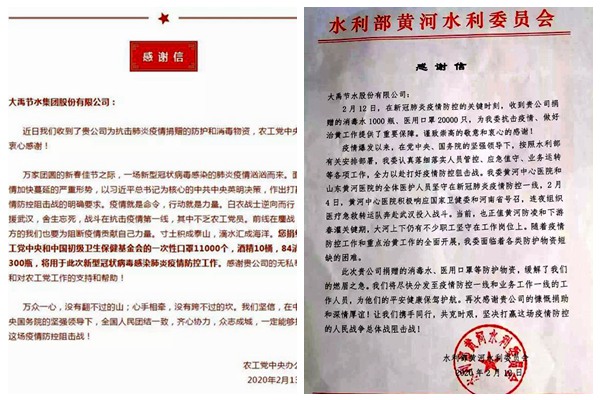 截至目前,大禹节水公司已经签订采购合同并落实完毕的各类防疫物资价值约979.81 万元。据悉,以上所有捐赠物资将按照新型冠状病毒感染的肺炎疫情防控应急指挥部的统一调配,第一时间送到抗击疫情一线医疗单位。