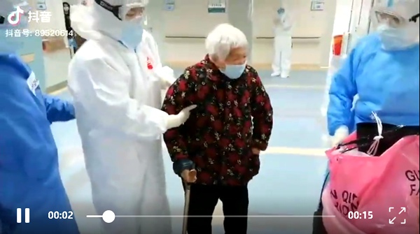 驰援武汉的巴中农工党党员赵川医生负责的病区,一位白发苍苍的患者治愈出院时,掩饰不住内心的激动,不知怎么感谢医护人员让她渡过这个“生死劫”。