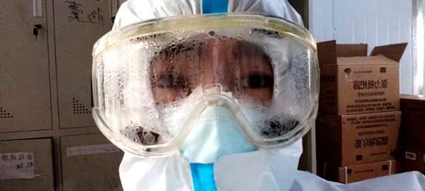 每次进舱工作6小时,但加上进舱前准备及出舱后结束整理,得有8个小时。这期间由于穿着防护服,不便穿脱,更为了节约防护服务,进舱后尽量避免上厕所,进舱的同志都不敢吃饱,更不敢喝水。为了避免病毒藏匿,进舱不允许穿毛衣,只能穿保暖内衣,在没有任何取暖设备的初春凌晨更觉寒入骨髓。瞌睡一遍一遍的袭来,他们但连趴在桌前小憩一下都不敢,害怕在这特殊时期不小心因为感冒倒在战场上,也担心睡梦之中无意触碰到护目镜造成装备移位让自己无防护的暴露于危险中。经过几小时疲惫的战斗,护目镜上的水雾一遍又一遍的凝成水流聚于框底,形成一个小水池,每一下身体的晃动都害怕液体流入眼睛。出舱时护目镜和口罩的勒痕深深的印入每一个人的脸颊,仿佛一道道荣誉的伤疤。